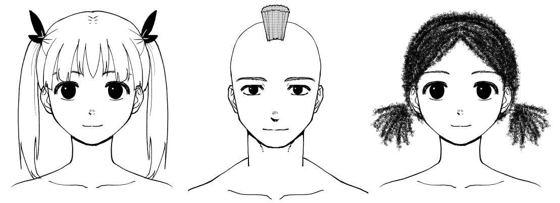 Anime hair with different hairstyles drawing examples.